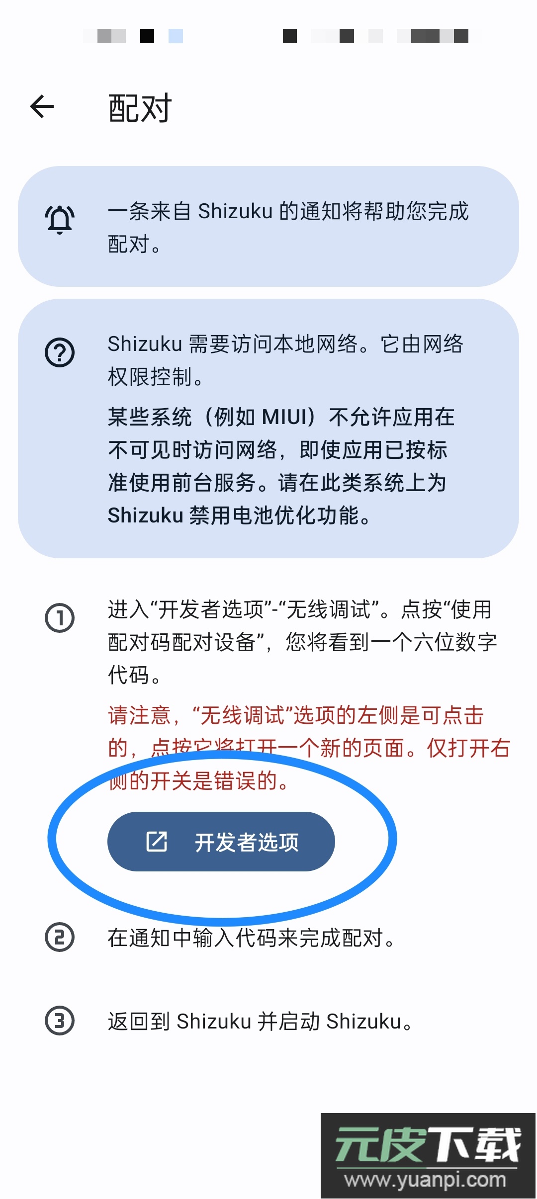 Android 11及以上版本提供了无线调试功能,位于开发者设置的无线调试菜单中,Shizuku从4.0版本开始支持此方式。