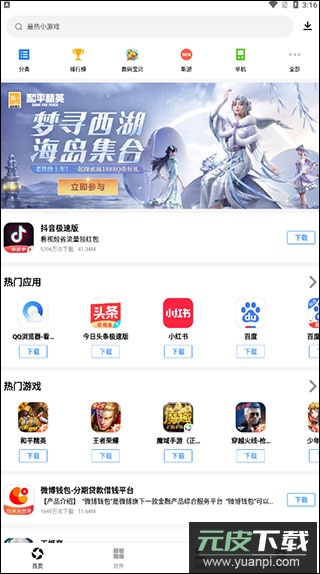 应用宝官方最新版本是一款功能丰富的应用商城软件,它不仅提供了海量的应用下载服务,还能根据用户的个人喜好和使用习惯智能推荐可能感兴趣的新奇应用,就像一个贴心的数字助手,总能帮你发现那些有趣又实用的工具与游戏,让探索手机应用成为一件充满乐趣的事。