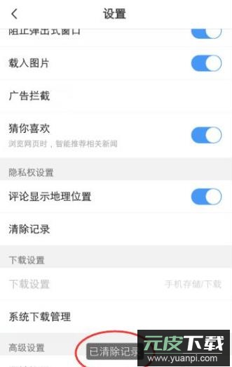 进入浏览器设置页面,向下滑动找到隐私权设置部分,点击【清除记录】选项。
