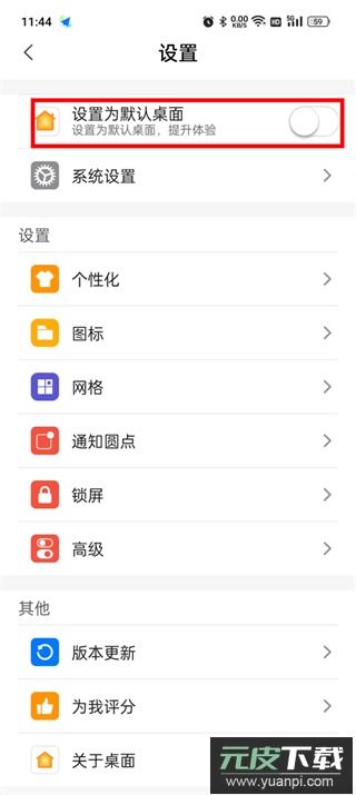 5、在设置列表首位选择“设置为默认桌面”功能项;