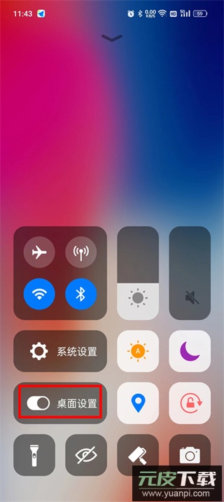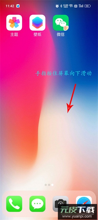 3、在桌面任意位置向下滑动,呼出功能菜单面板;