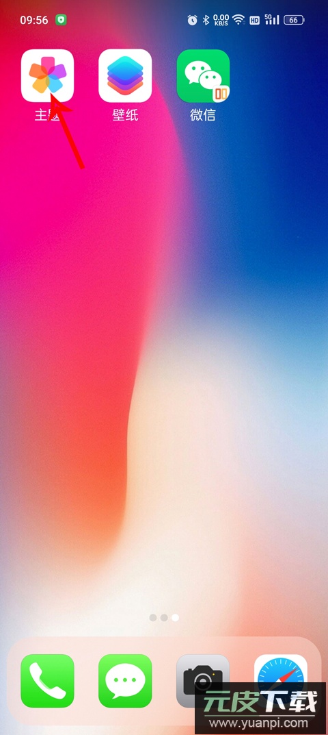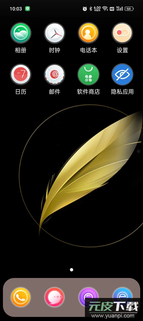 3、进入桌面后,可看到已应用的主题、壁纸及常用应用图标;