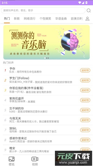 3、铃声专区拥有众多热门铃声,用户可自由挑选,也可通过搜索功能快速定位;