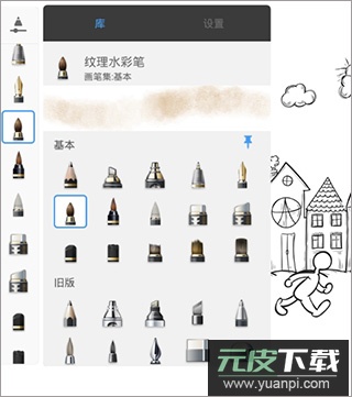 提供多种常见绘画工具,如铅笔、墨水笔与马克笔,并包含超过190种可自定义纹理与形状的笔刷;