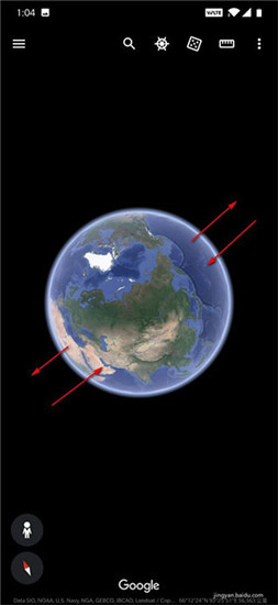 1、启动软件后,将两根手指放在屏幕上移动可旋转地球;两指向下拖动能倾斜视图;两指向左右拉开则可放大画面。