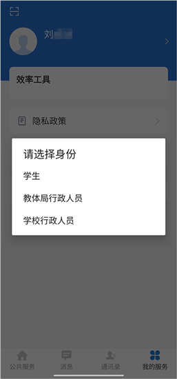 选定身份后,可在“我的服务”页面顶部查看并切换个人信息。