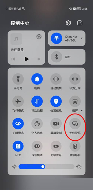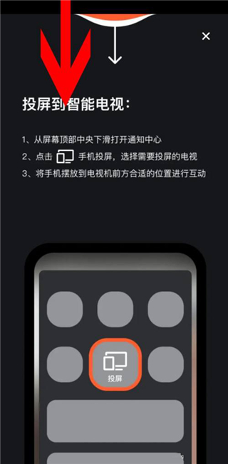 3、进入投屏页面后,从手机屏幕顶端向下滑动。