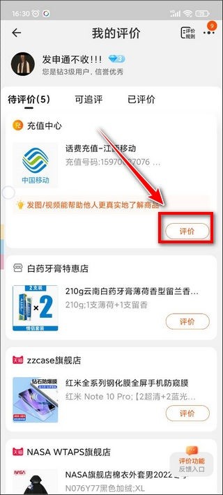 2、如果当前你还有待评价的订单,也可以直接从待评价入口进入淘宝评价界面;