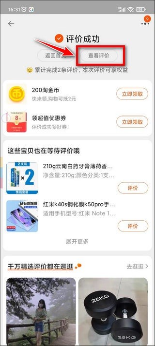 4、评价提交成功后,可点击查看已经发布的评价内容;