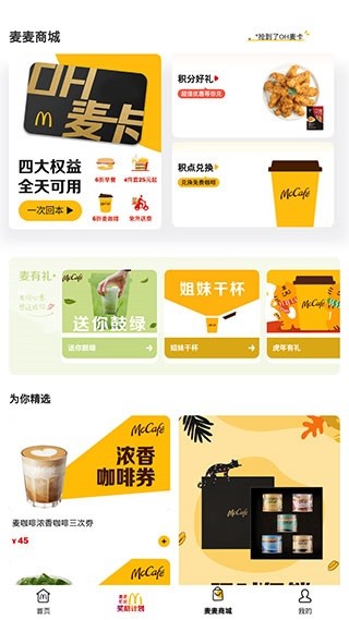 麦咖啡积点可随心兑换,攒够对应积点就能免费喝咖啡。