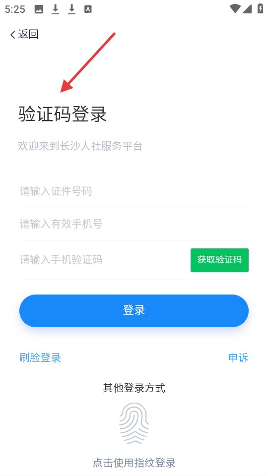 1、进入平台验证码登录页面,需要填写个人证件号、手机号后获取验证码完成登录,也可以选择刷脸、指纹等快捷登录方式;