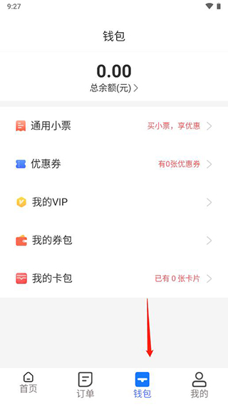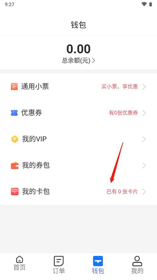 2、若当前持卡数量显示为零,点击我的卡包即可开始绑卡操作;