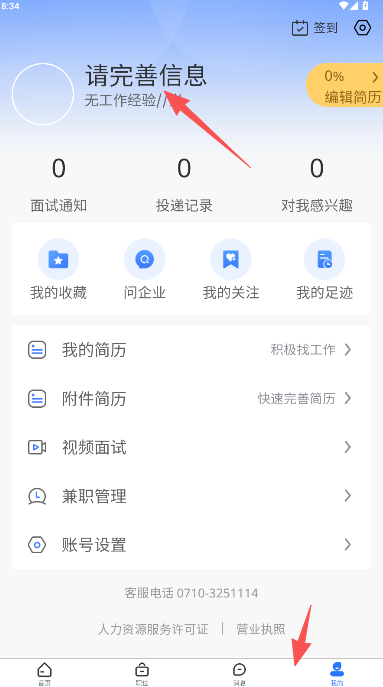 2、两种身份的操作流程基本相似,以下以个人求职者界面为例进行实际演示。