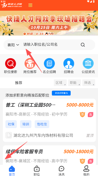 4、与其他招聘软件类似,可通过地区筛选、首页推荐或线上招聘会等途径寻找心仪岗位。