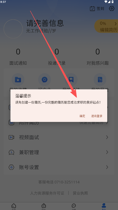 6、基础简历完成后,平台会根据填写内容提供针对性建议,可参照提示进行修改并最终发布。