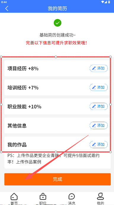 3、一份完整的简历是求职的重要敲门砖,为了让更多企业注意到你,完善简历步骤必不可少。