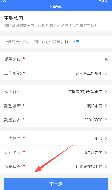 1、创建个人简历,明确求职岗位与目标。