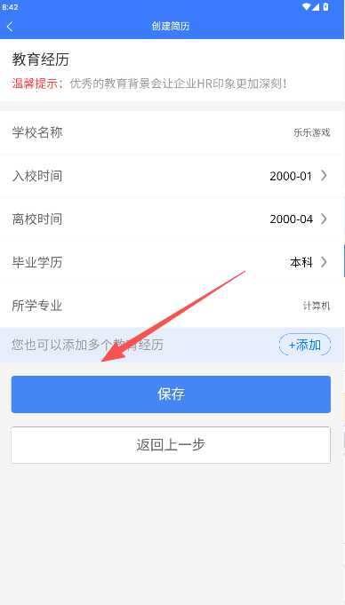 5、最后填写教育经历,学历是现代企业招聘的重要参考,添加大学及其他教育经历可为简历加分。