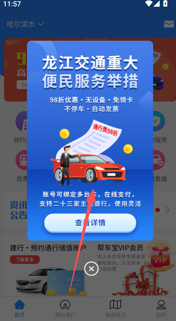 高速公路无感支付:接入黑龙江省移动支付交费系统,实现不停车快速通行;