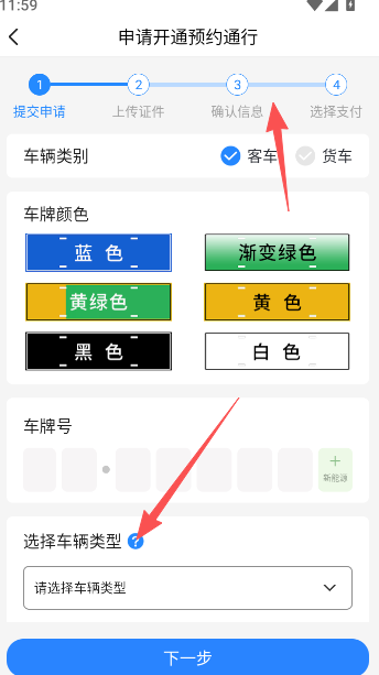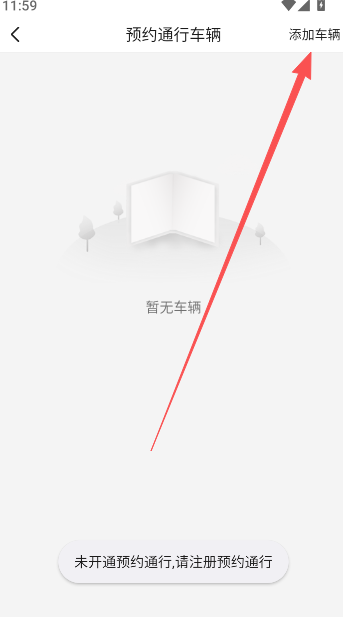 2、在预约通行车辆页面中,点击右上方的添加车辆选项。