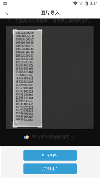 3、选择图片导入,打开相应图片即可成功导入号码;
