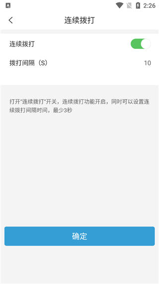 连续拨打:支持设置连续拨号及自定义拨号间隔时间;