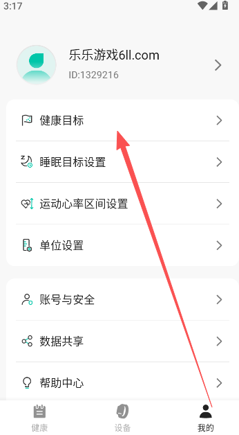 1、进入乐心用户主界面,找到健康目标功能选项,点击进入设置页面。