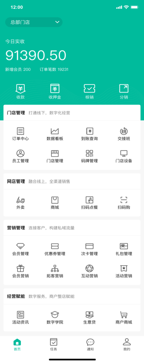 数字化经营:依托独有的底层数据算法,商家无需依赖电脑,通过手机就能完成收款、核销、对账及报表查看等全部经营操作;