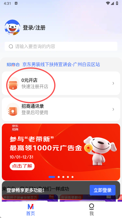 2、在页面中找到并选择【我要开店】功能入口。