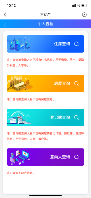 3、选择需要查询的类型,例如住房查询或登记簿查询,点击查询后结果将直接显示,可通过右上角选项下载保存至手机。