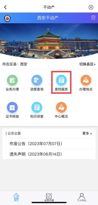 2、首页点击不动产登记,进入页面后选择查档服务功能。