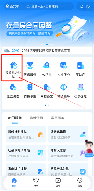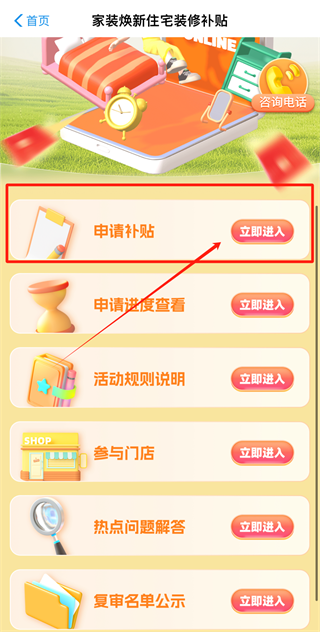 1.首先下载并打开应用,找到【装修综合补贴】入口点击进入;
