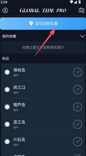 1、开启应用定位功能,获取当前位置的最新离线潮汐情况。