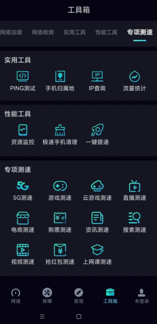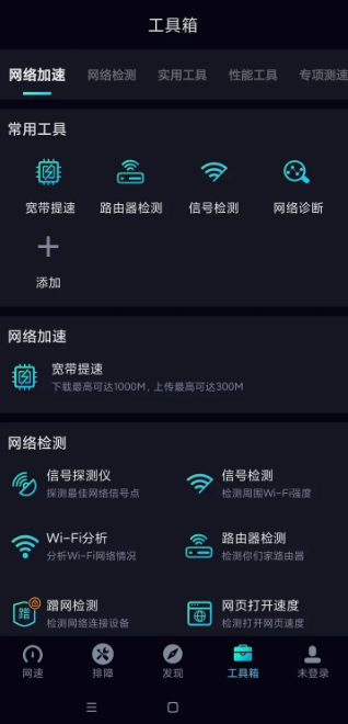 2. 在工具箱的网络加速板块可进行宽带提速,下载最高可达1000M,上传最高支持3000M。