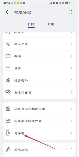 3、继续向下滑动,找到并点击悬浮窗设置;