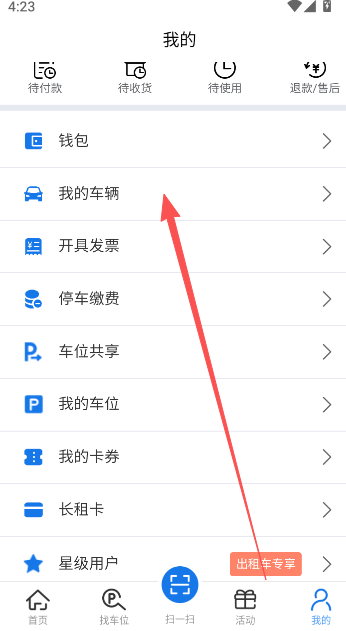 3、返回前一界面,点击“我的车辆”选项。