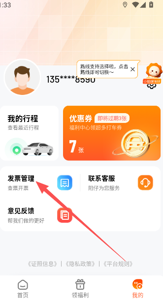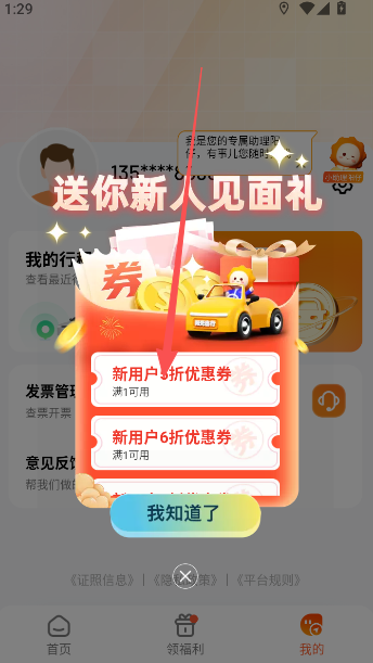 2、新用户注册后可领取平台赠送的乘车优惠券。