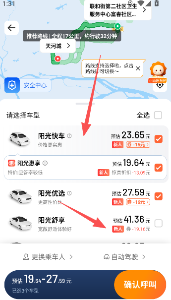 4、选择合适车型并确认叫车,等待司机接单后,可实时查看车辆位置;司机到达前会主动联系,请您稍作等待。