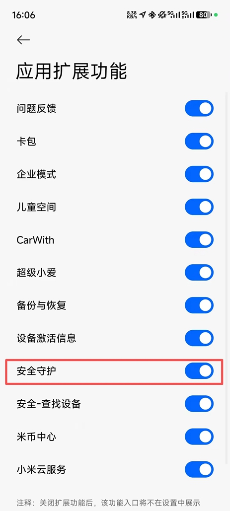 小米手机关闭安全守护的具体步骤为:首先进入手机“设置”,搜索“安全守护”选项,然后将其关闭即可。