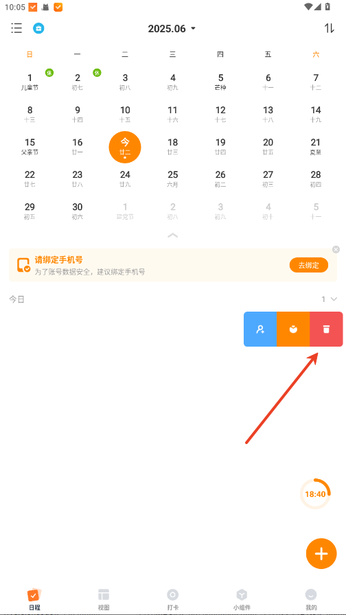 1、在日程列表中找到需要删除的笔记标签,向左滑动。