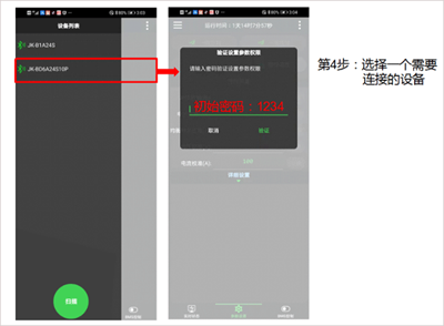 3:点击“扫描”搜索设备,按图示输入密码;