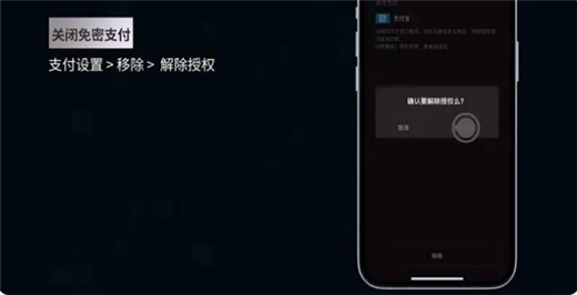 移除:进入支付设置页面 > 点击移除按钮 > 确认解除授权即可关闭免密支付功能;