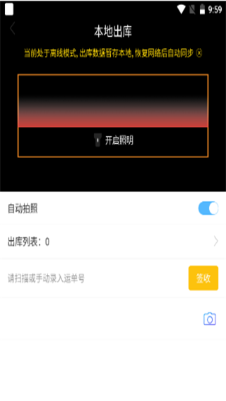 4、跳转至本地出库页面后,扫描识别快递单号即可完成出库操作;
