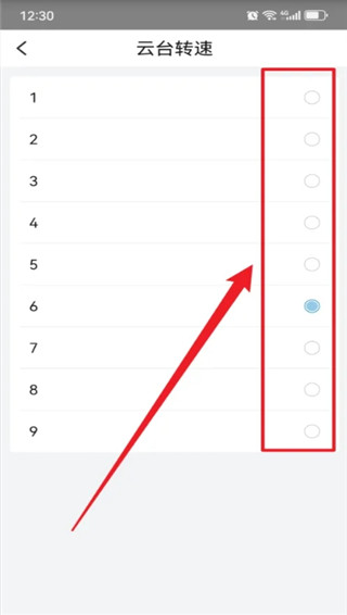 进入云台转速界面,点击自己需要的【转速】选项即可完成设置。
