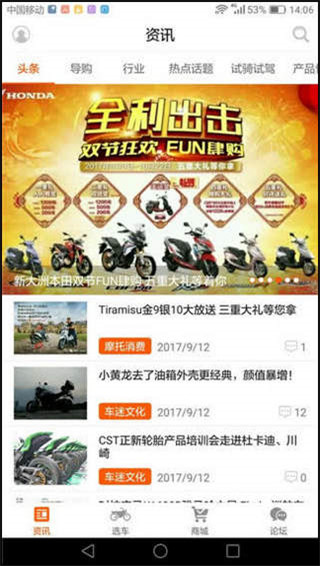 3、摩托吧板块:这是专门面向摩友的话题讨论专区,设置了二手交易、女骑士、日常兜风、城市轻骑等多个垂直话题分区;