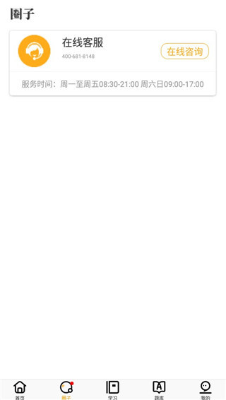 4、点击圈子板块,有在线客服实时在线,帮你解答各类使用或学习相关的疑问;