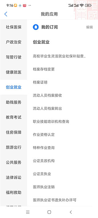 2. 进入“我的应用”界面,选择“社保医保”选项,可以办理养老保险转移、社保待遇认证等多项社保业务。