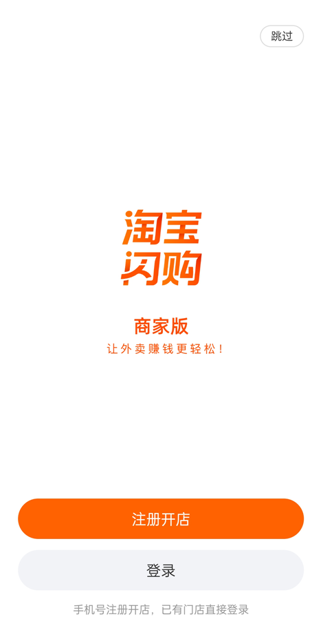 1、启动淘宝闪购商家版应用,在首页找到并点击“注册开店”按钮。