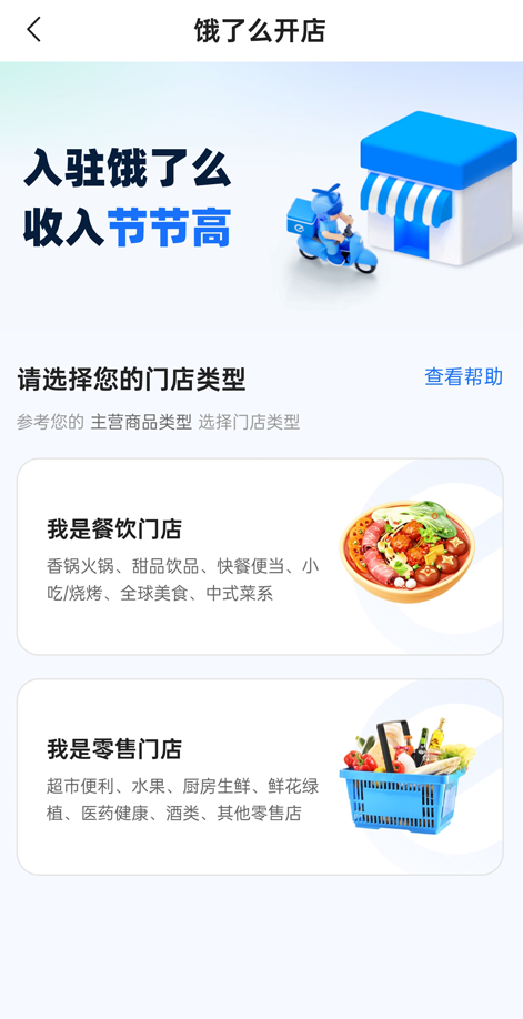 2、接着根据自身经营业务,在“餐饮门店”或“零售门店”中选择对应的类型。