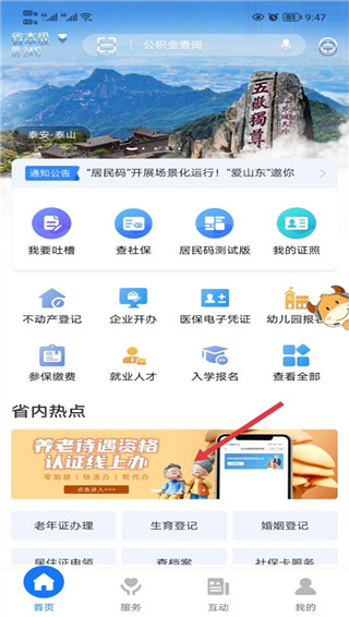 1、打开app,从首页的“省内热点”板块点击进入资格认证区域;